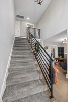 This 2,040 sq ft home features a grand foyer leading to a bright two-story living room with floor-to-ceiling shiplap and a gas fireplace, plus a balcony overlook. The kitchen includes stainless steel appliances, gas stove, granite counters, tile backsplash, and pantry. The primary suite offers tray ceilings, two walk-in closets, and a luxurious bath with double vanity, soaking tub, and separate shower. Guest rooms share a Jack-and-Jill bath. Enjoy a covered and open patio with bench, lights, and fire pit, plus an aluminum fence and no backyard neighbors for added privacy.