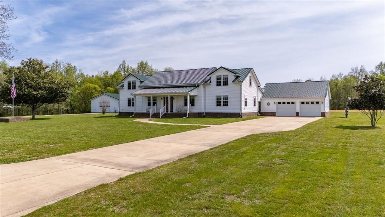 Once you visit this 60 acre paradise tucked away just south of Lawrenceburg, you will be ready to make this your home. This well cared for property has trails that will take you across the entire farm. So many options for additional housing throughout allows the perfect fit for those looking for a multi family opportunity. Love Branch has multiple springs feeding into it and is a great place to spend the day relaxing. 30 acres are currently farmed, 20-22 acres are cut for hay, and the remaining land is wooded. The home is so inviting with the cathedral ceiling in the kitchen and dining area and a large loft overlooking this space. There are 2 primary suites with large closets and full baths. One is on the main floor and the other on the 2nd floor. You will also find a home office with an amazing storage closet located over the living area. Offering 3 bedrooms, the office and loft could also be used as extra bedrooms. There is a 2 car garage, heated and cooled, connected to the house by a breezeway and it also has a full bath, built in cabinets and a staircase leading to the spacious storage area above the garage that is ready to be closed in if needed. The home is serviced by 3 separate heating and cooling units. In 2018 a 34x50, fully insulated shop was added with 2 large electric garage doors and an inviting front porch. Another insulated shed is perfect for lawnmowers and yard tools. So much love has been poured into this fabulous property and it does not go unnoticed!