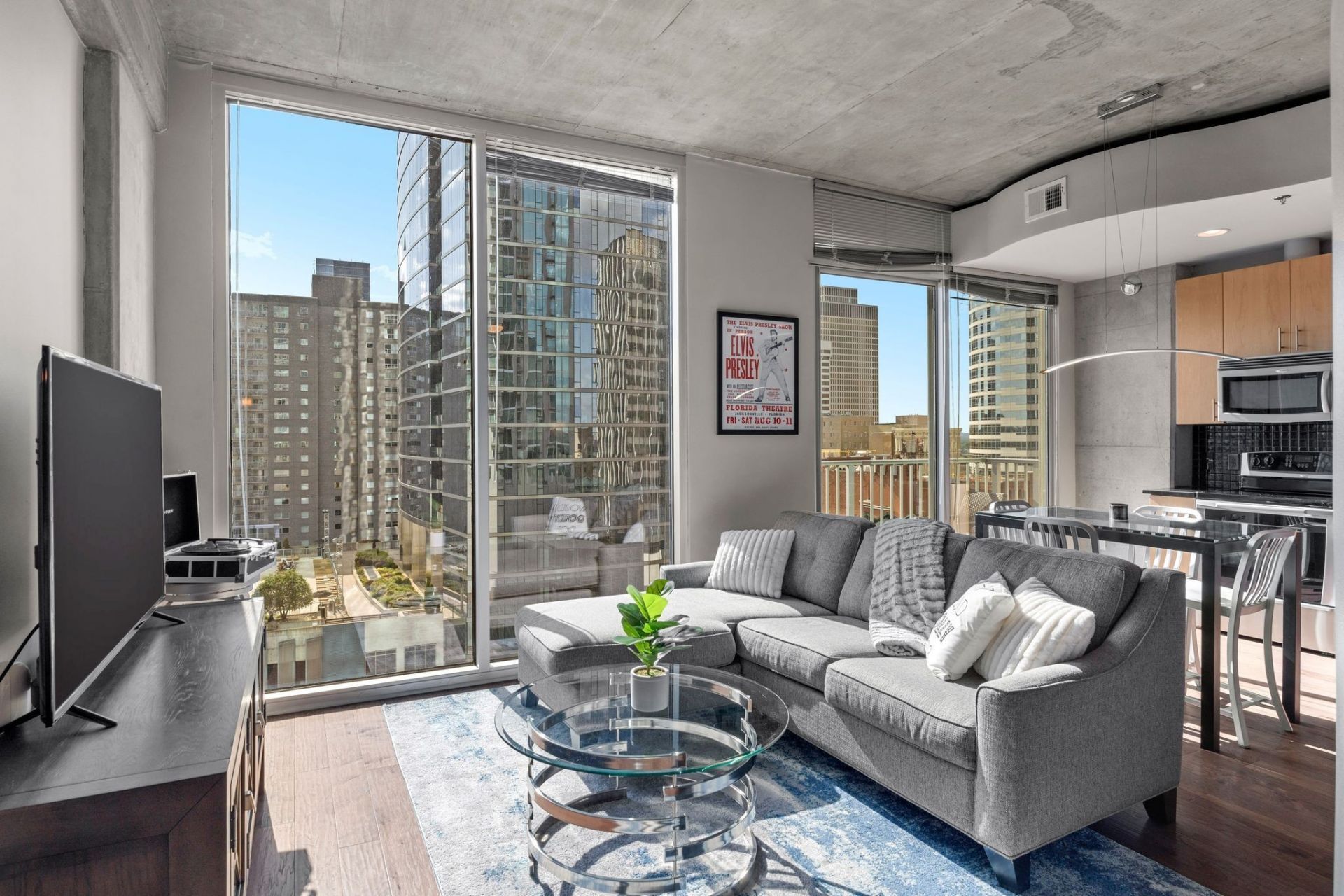 Downtown Nashville! Perfectly positioned for the city views. Step inside and enjoy the open layout blending comfort with modern style in this one bedroom condo.The Viridian offers top-notch amenities which include rooftop pool, lounge with TV's,fully equipped fitness center,secure access/ 24 Hour Concierge.Walk out of the building and Broadway awaits with its legendary honky-tonks, live music venues, award-winning restaurants, and vibrant nightlife. Whether you're looking for a weekend retreat, full-time residence, or an investment opportunity, this condo puts you in the heart of everything Nashville has to offer. Parking space #806. Sellers will consider selling furnishings.New blinds recently installed.