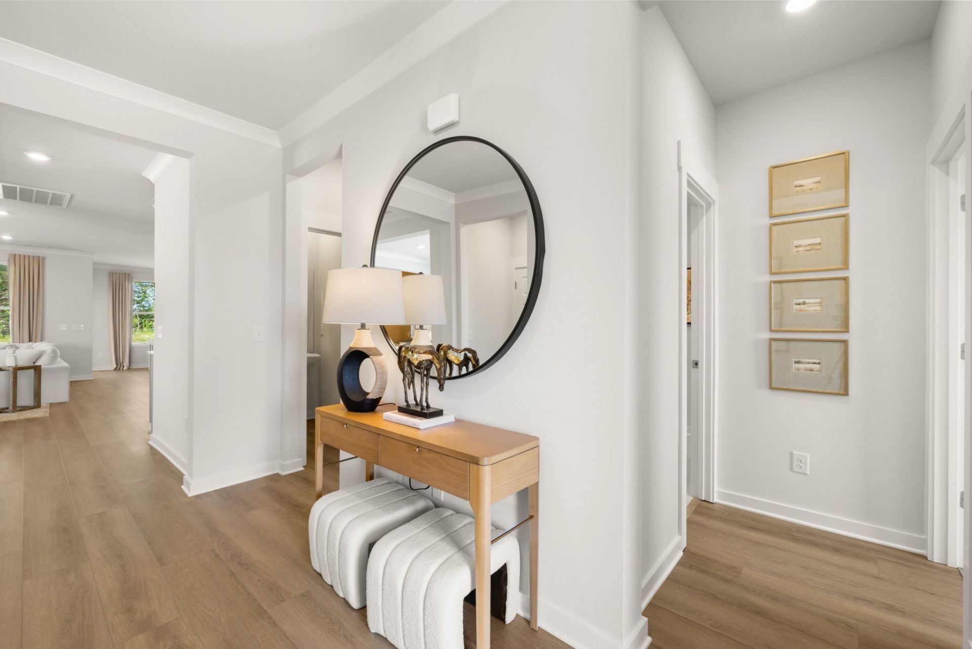 This single-story home shares an open layout between the kitchen, nook and family room for easy entertaining and access to the covered patio for outdoor relaxation. A separate formal dining room is perfect for hosting dinner parties with loved ones. A luxe owner's suite is in a rear corner of the home with an en-suite bathroom and walk-in closet, while three secondary bedrooms are at the front of the home, one with an en-suite bathroom, ideal for overnight guests. *Images from a furnished model of this home. Actual configuration and features may vary.