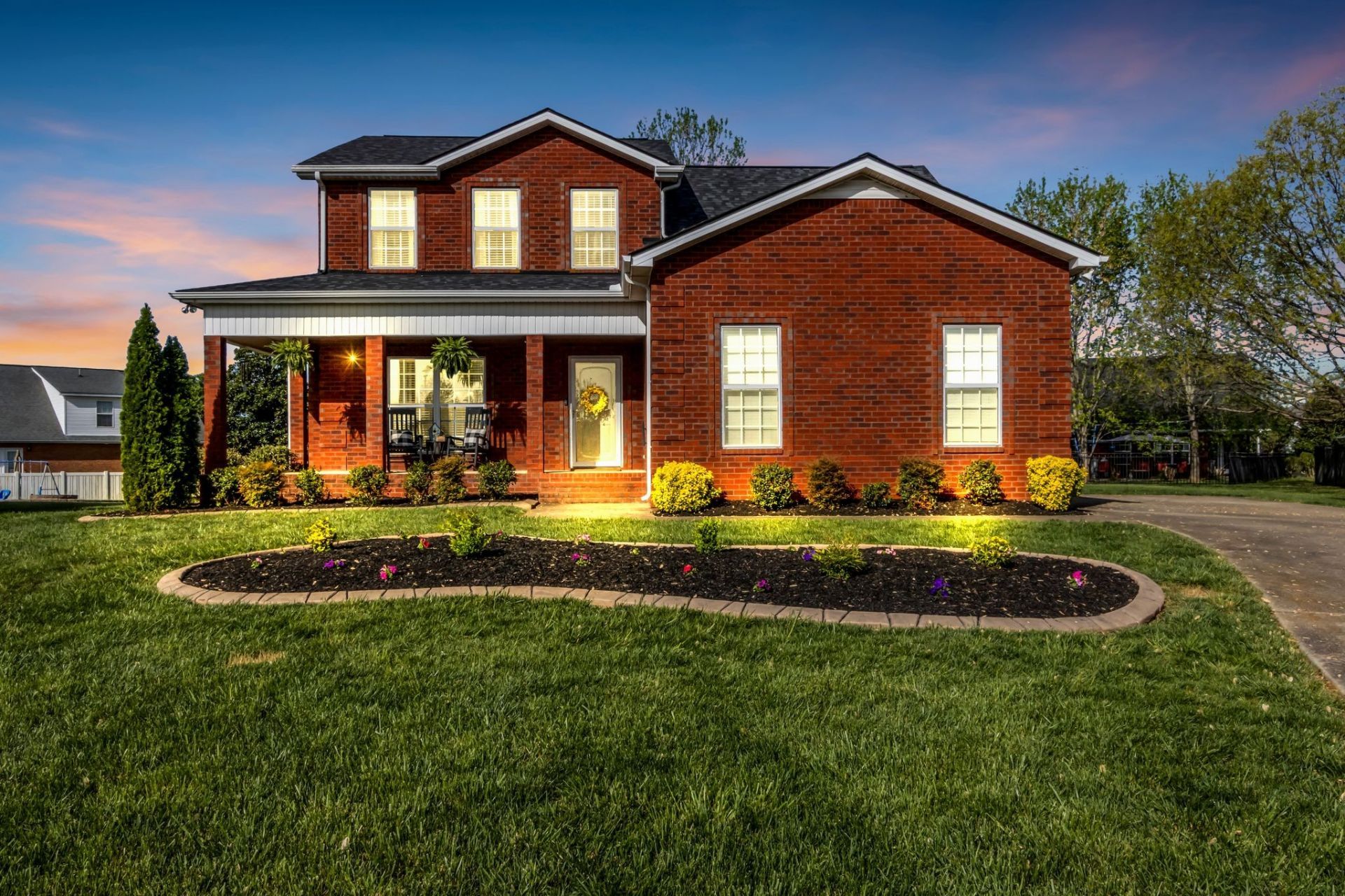 Gorgeous lot located in a cul-de-sac in Liberty Station Zoned Triple Siegel! This beautiful all brick home features a wrap around front porch, main floor master, living room with real hardwood, built-ins on either side of the fireplace, white cabinets in the kitchen with new white quartz counters, newer stainless appliances and tile backsplash. Extra cabinetry and glass wall cabinets added in the dining room to serve as a coffee bar or spacious buffet area. Covered back porch with a view of the spacious back yard with concrete edging around all the professional landscaping and lush green grass. Upstairs features 3 more bedrooms with a super cute guest bath and large bonus room for movie nights, kids playroom and more. Powder bath and laundry room off the kitchen and garage spaces. New roof (2025), 2 Nest thermostats, Ring security system with cameras stay, new modern garage door opener with camera on the app, new garage door springs, Water Heater (2022), Downstairs HVAC (2016), Upstairs HVAC (2012), both units have been services annually. Liberty Station offers a community pool, holiday planned activities and easy access grocery stores,I-24 & 840. Come take a look!